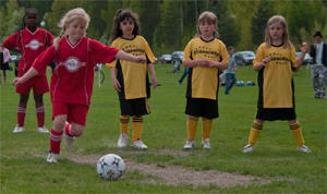 I kvartersfotbollen spelar Johanna med tjejer som är ett år äldre. Denna